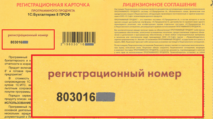 Теперь мы знаем, как важно знать регистрационный номер программы 1С. Чтобы потерять его, надо очень сильно постараться. Фирма 1С указывает регномер 1С во множестве различных мест. Рассмотрим, что эта за места.