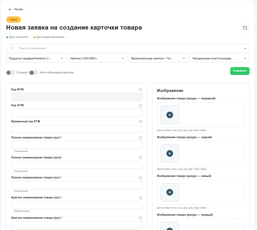 Карточка товара одновременно передается на публикацию в государственной базе данных Национальный каталог товаров.