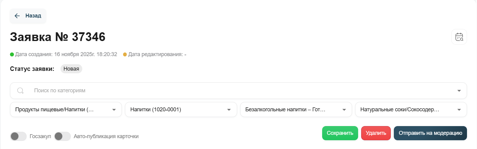 - 4.5. Подача заявки на основе имеющейся карточки товара