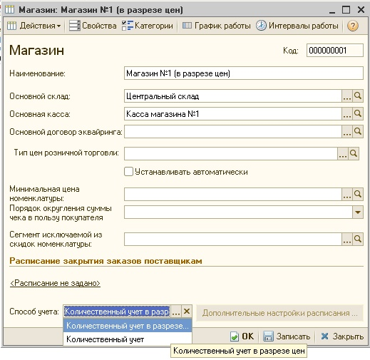 Стратегия ведения учета остатков лекарственных средств определяется на уровне магазина. Для этого необходимо указать способ учета, который может принимать следующие значения: