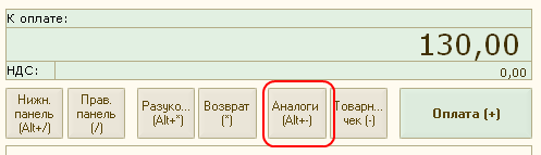 Работа с аналогами не отличается от работы РМК в обычном режиме. После того как работа с аналогами завершена, необходимо нажать кнопку «Аналоги» еще раз. Это вернет РМК в обычный режим работы.